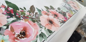 Naklejki drukujemy na folii monomerycznej matowej lub błyszczącej. Naklejki rozkładamy na 1m2 folii i tniemy po obrysie. Niepotrzebne elementy są wybierane. Naklejki można stosować praktycznie na każdej powierzchni: okna, meble, ściany, obudowy komputerów, telefonów, samochody.