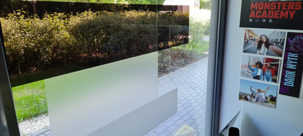 Stosujemy dwa rodzaje folii mlecznych – jaśniejszy oraz ciemniejszy. Istnieje również opcja przyciemniania okien.